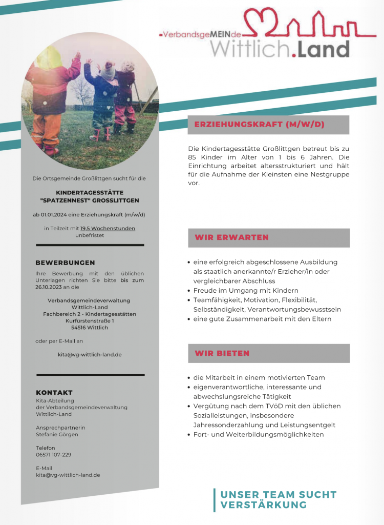 Stellenausschreibung Kindertagesstätte “Spatzennest”